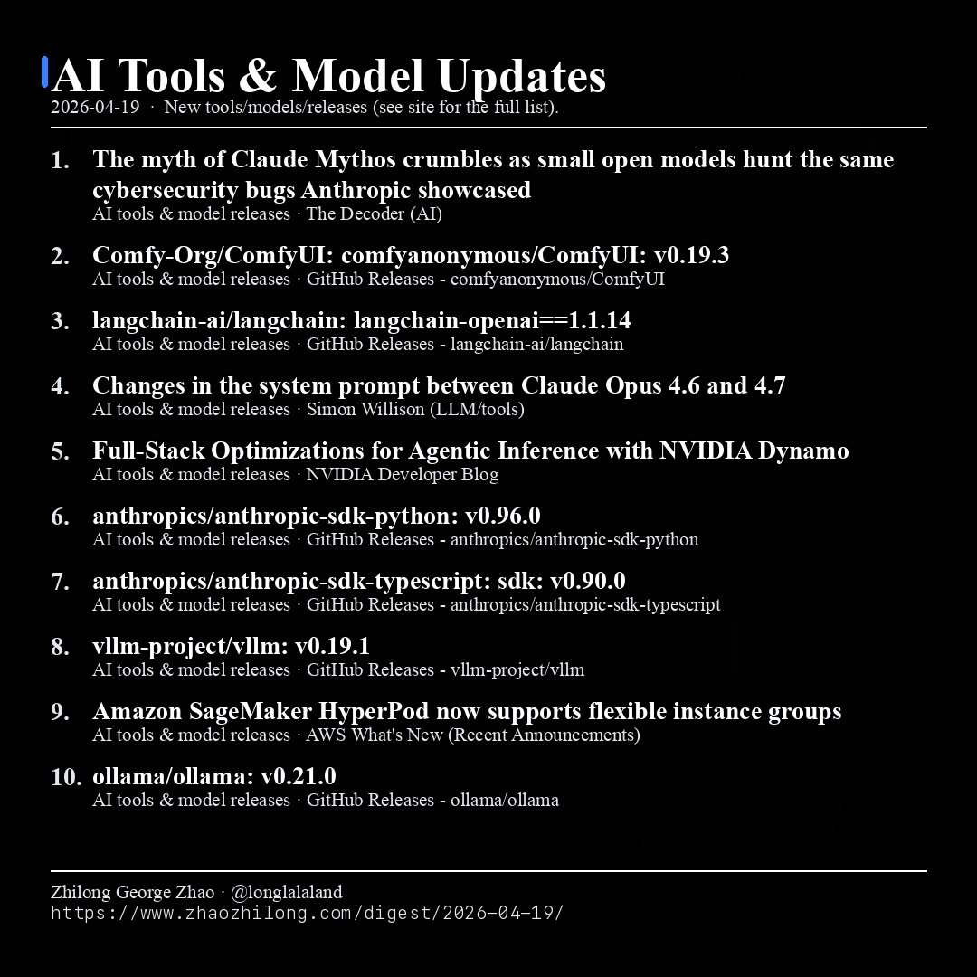 - vllm-project/vllm: v0.19.1 Release update (see link for changelog).
