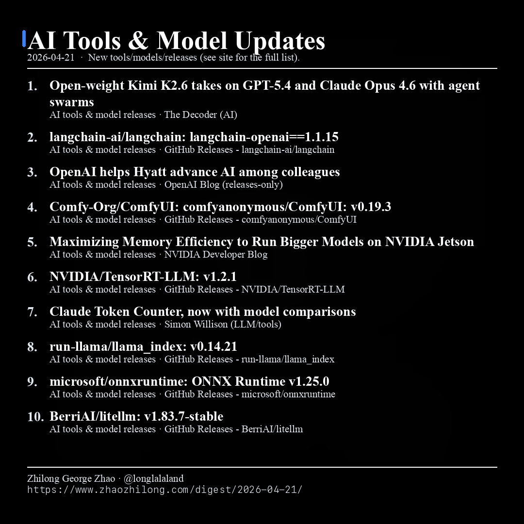 - run-llama/llama_index: v0.14.21 Release update (see link for changelog).
