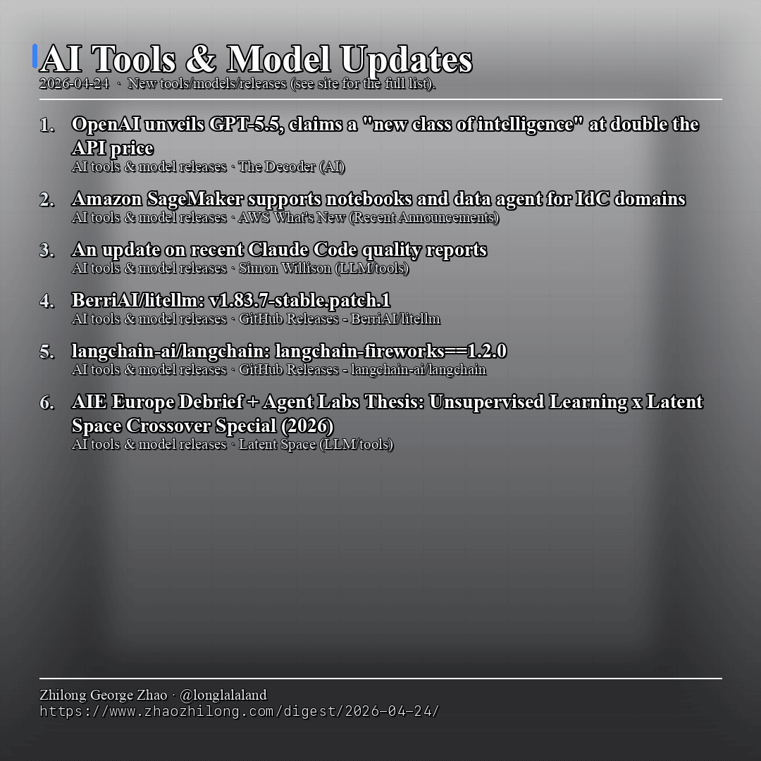 - OpenAI unveils GPT-5.5, claims a “new class of intelligence” at double the API price OpenAI has announced GPT-5.5, an agentic model designed to work through complex tasks autonomously by switching between multiple tools.