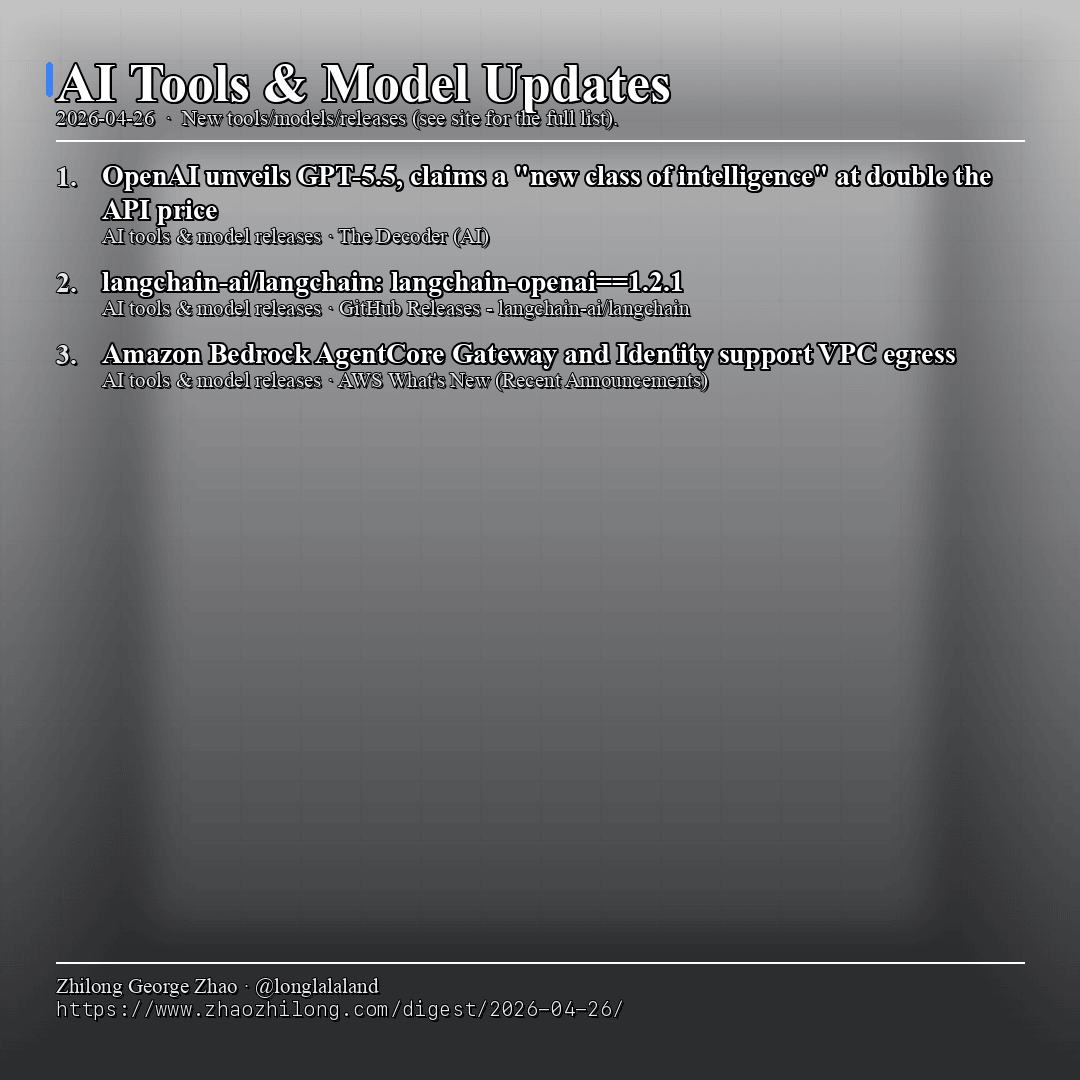- OpenAI unveils GPT-5.5, claims a “new class of intelligence” at double the API price OpenAI has announced GPT-5.5, an agentic model designed to work through complex tasks autonomously by switching between multiple tools.