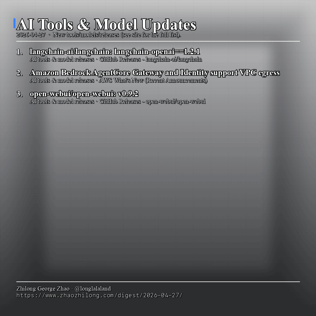 - langchain-ai/langchain: langchain-openai==1.2.1 Release update (see link for changelog).