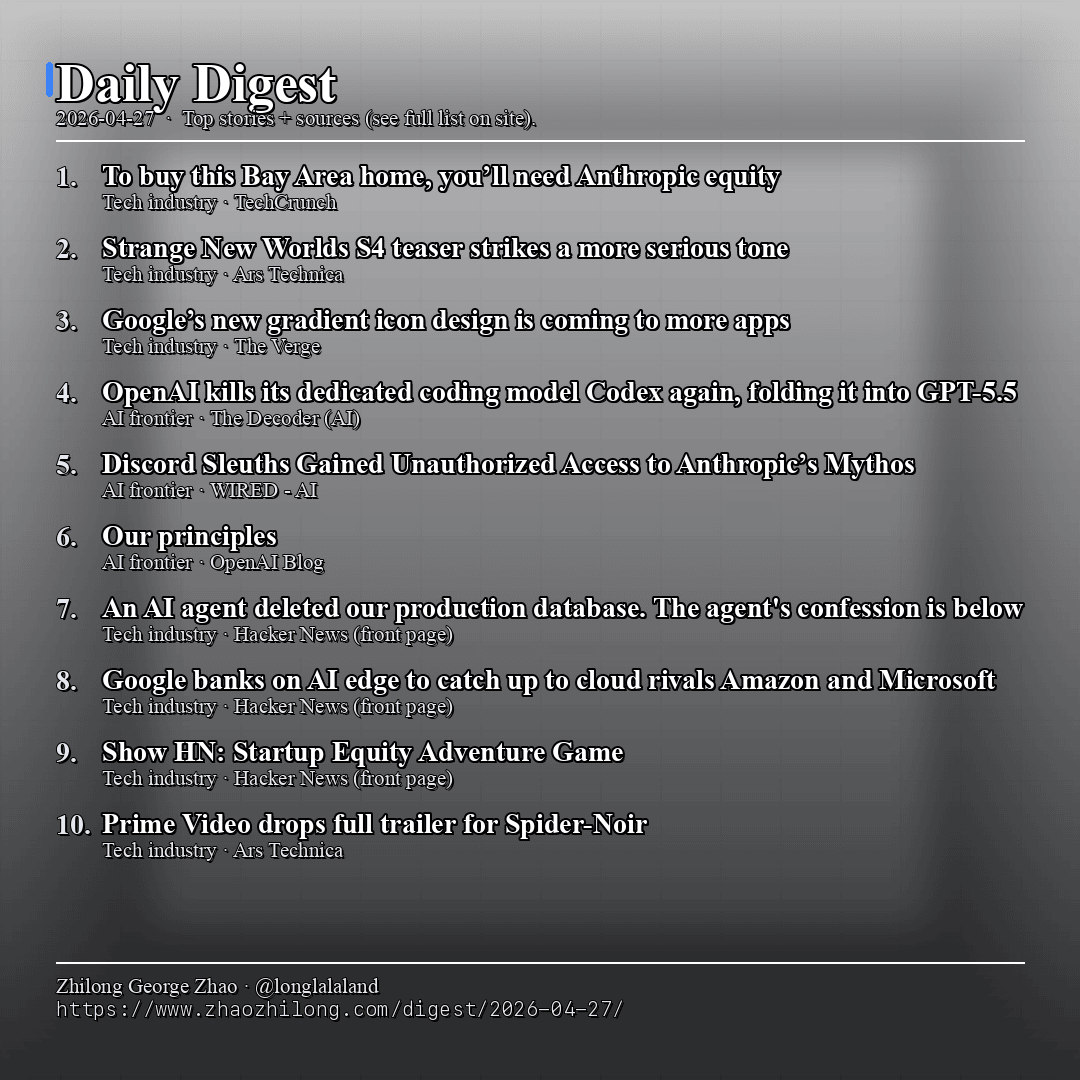 Today: To buy this Bay Area home, you’ll need Anthropic equity · Strange New Worlds S4 teaser strikes a more serious tone · AI: langchain-ai/langchain: langchain-openai==1.2.1.