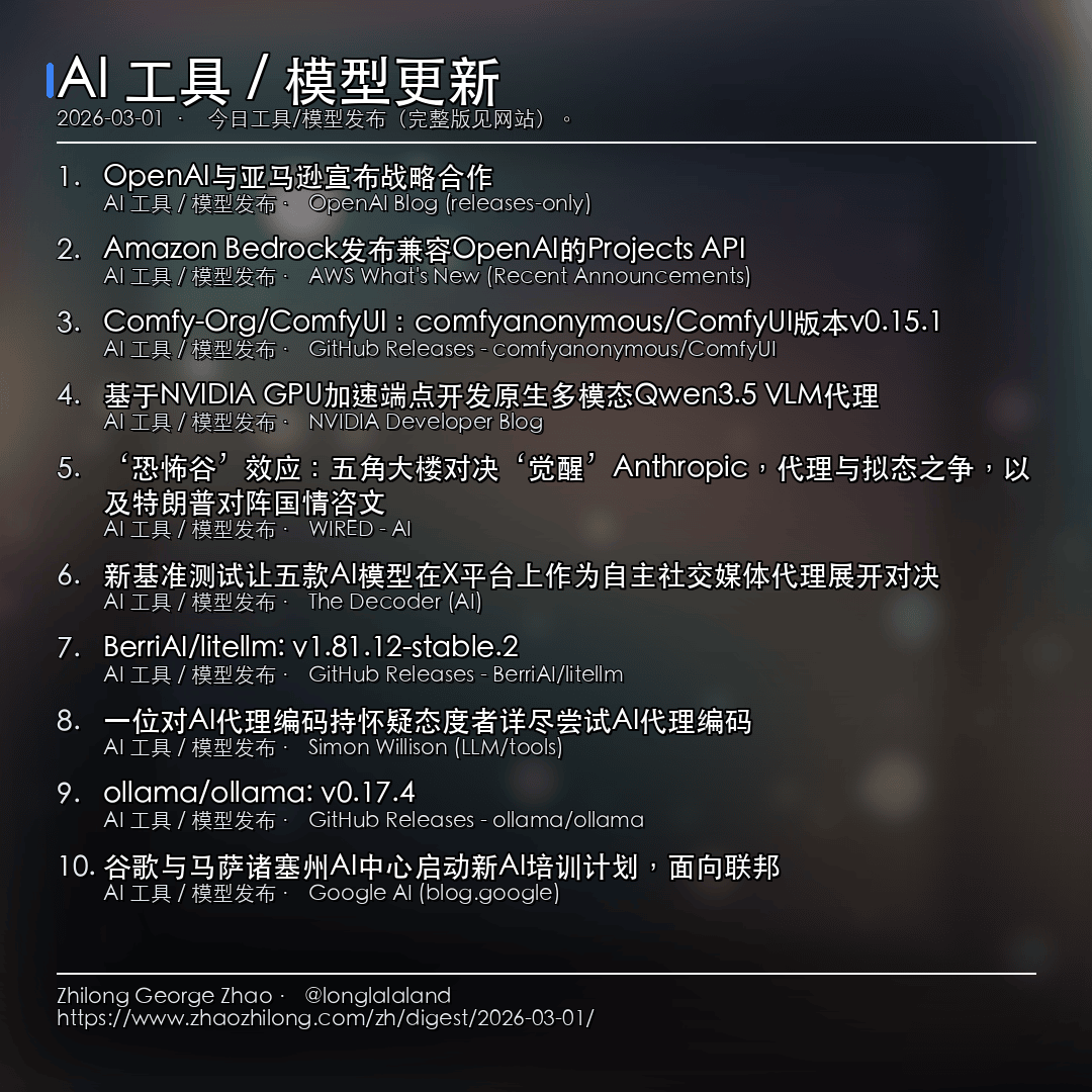 - OpenAI与亚马逊宣布战略合作 OpenAI与亚马逊宣布战略合作,将OpenAI的Frontier平台引入AWS,扩展AI基础设施、定制模型…